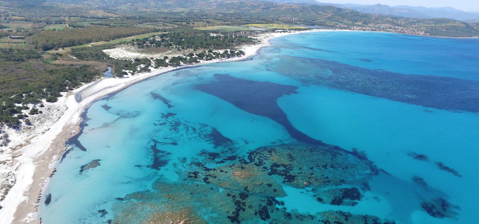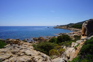 Lässt man, von Norden kommend, die große Bucht von San Giovanni bei S. Lucia hinter sich, zeigt sich die Küstenstraße von ihrer schönsten Seite. Nach 6 Kilometern Fahrt durch duftende Macchia und Pinienwälder öffnet sich die Sandbucht von Capo Comino, bekannt durch ihre ungewöhnlich hohen Dünen. Das Kap mit seinem Leuchtturm markiert den östlichsten Punkt der Insel. Im Hintergrund ragt die bizarre Silhouette des Supramonte-Gebirgsmassivs auf.